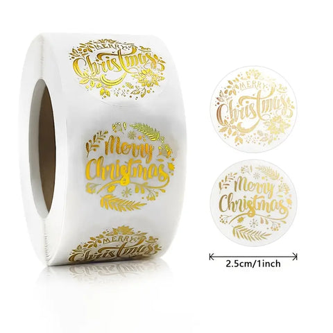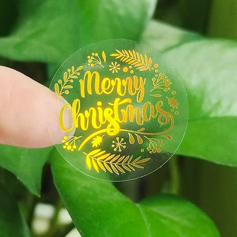 MERRY CHRISTMAS GOLD CLEAR STICKERS 500 pack