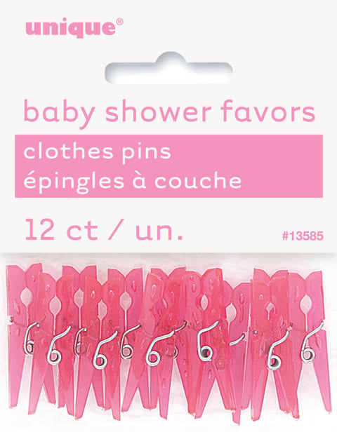 PINK CLOTHES PEGS / PINS 12 pack PARTY FAVORS