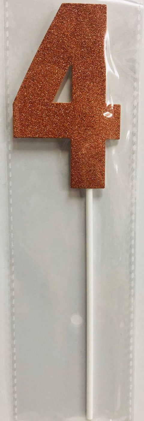 ROSE GOLD #4 GLITTER CARD CAKE TOPPER 8cm high