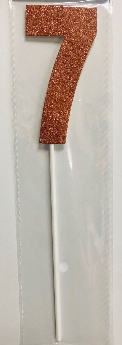 ROSE GOLD #7 GLITTER CARD CAKE TOPPER 8cm high